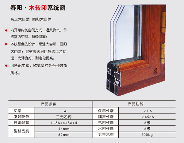 內(nèi)開(kāi)可內(nèi)倒啟閉方式,通風(fēng)換氣,節(jié)約室內(nèi)空間、新穎可靠;木紋顏色的設(shè)計(jì),親近大自然,回歸大自然;鋁材表面采用特殊工藝處理,光澤度好,耐老化更高。可匹配中式、歐式簡(jiǎn)約等各種裝修風(fēng)格。